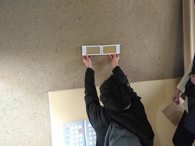 糊土、柿渋和紙、漆喰の色と素材決め